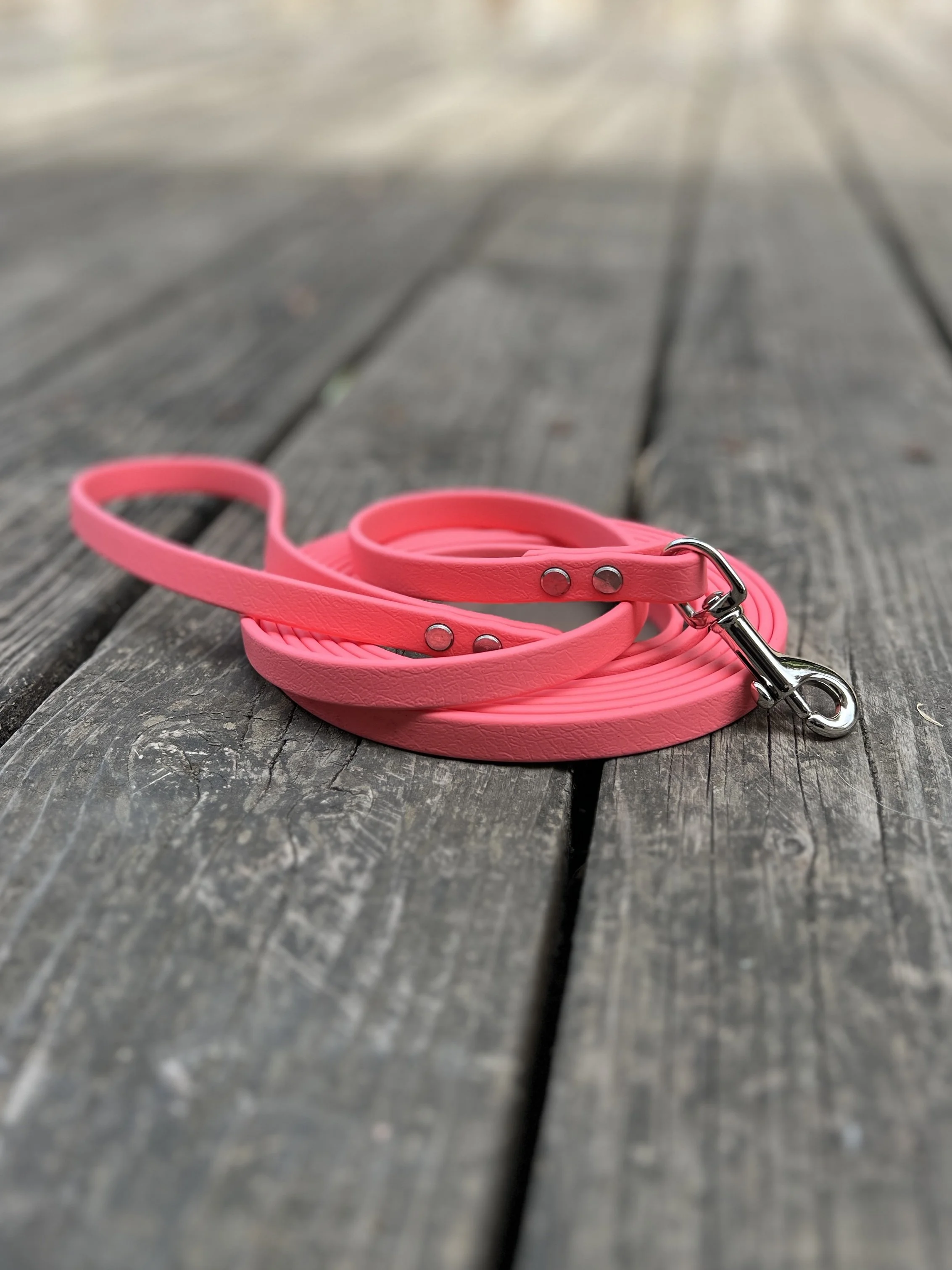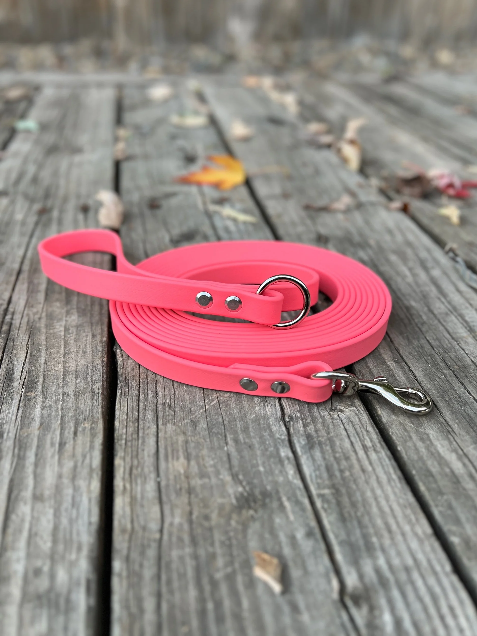 BioThane gearWeatherproof, durable, and ready for any adventure. Ready to Ship! from $25.00 Sale LGHTWGHT | (For dogs [or cats] ~10lbs or less) from $30.00 STANDARD from $32.00 LONG LINES from $42.00 MARAUDER | Adjustable handsfree from $55.00 VOYAGER | Adjustable handsfree + detachable handle from $70.00 NOMAD | Handsfree drag line base + emergency backup leash $59.00 DRAG LINES from $34.00 TRADITIONAL COLLAR $20.00 TRAFFIC HANDLES from $20.00 Slip Lead Option (Add on) $6.00 Fixed Traffic Handle (Add on) $5.00 DONATE A LONG LINE TO A SHELTER/RESCUE $25.00 Gift Card from $25.00